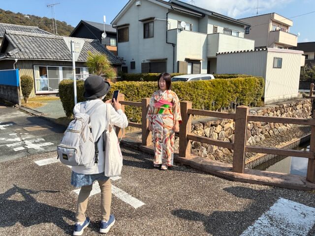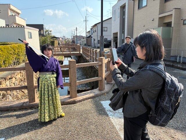 着物や忍者などに着替え、ガイドさんの案内でそれらのスポットをめぐりました。